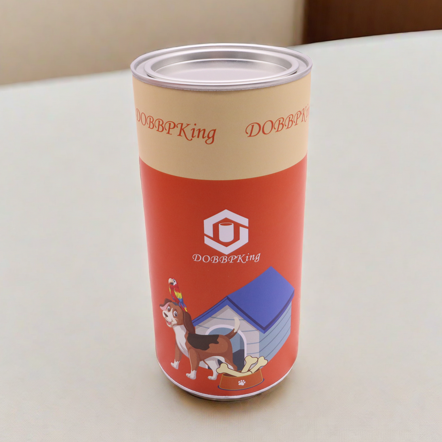 Elaborado con materiales de primera calidad aptos para uso alimentario, el recipiente de tubo de papel Dobbpking está diseñado para proporcionar una barrera impermeable contra el aire, la humedad y los contaminantes. Esto garantiza que la comida de su mascota se mantenga fresca, nutritiva y segura para el consumo durante períodos prolongados. El sello hermético, logrado a través de nuestra avanzada tecnología de tapa de fácil apertura, no solo preserva la calidad de los alimentos sino que también ofrece una comodidad de acceso incomparable.